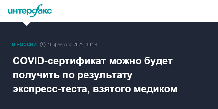 Москва. 10 февраля. INTERFAX.RU - Сертификат о перенесенном заболевании коронавирусом можно будет получить в том числе по положительным результатам экспресс-теста, взятого медицинским работником, сообщил в четверг помощник главы Минздрава РФ Алексей Кузнецов.