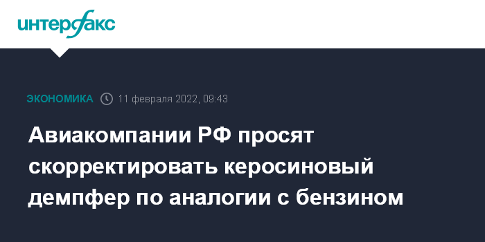 Авиакомпании РФ просят скорректировать керосиновый демпфер по аналогии с бензином