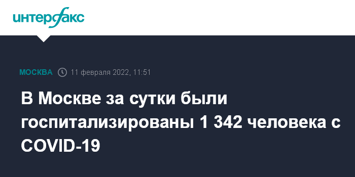 Москва. 11 февраля. INTERFAX.RU - За минувшие сутки в Москве в больницу попали 1 342 пациента с коронавирусом, следует из данных портала "Стопкоронавирус.рф".