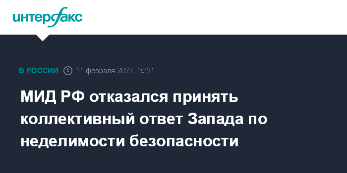 МИД РФ отказался принять коллективный ответ Запада по неделимости безопасности