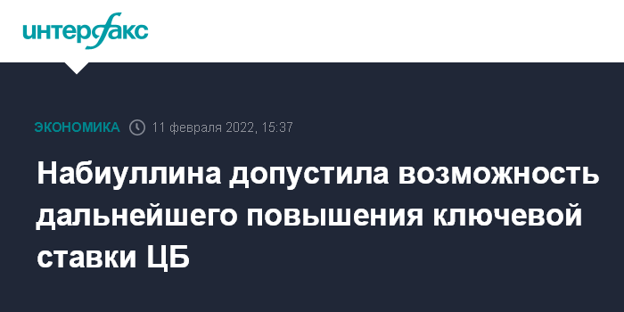 Набиуллина допустила возможность дальнейшего повышения ключевой ставки ЦБ
