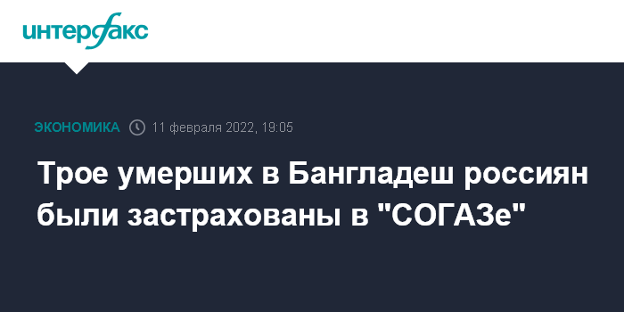 Трое умерших в Бангладеш россиян были застрахованы в "СОГАЗе"