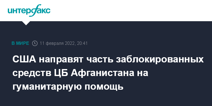 Чиновник из администрации США заявил, что затем Федеральный суд Нью-Йорка должен будет вынести решение, разрешающее перевести $3,5 млрд на помощь жителям Афганистана. Издание сообщает, что в ближайшие месяцы администрация Байдена в ожидании решения суда будет заниматься созданием стороннего трастового фонда, чтобы через него переводить средства в поддержку Афганистану.