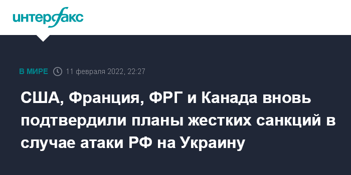 США, Франция, ФРГ и Канада вновь подтвердили планы жестких санкций в случае атаки РФ на Украину