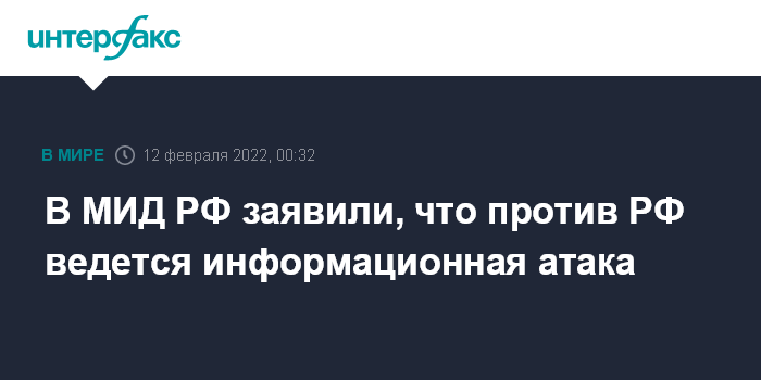 Москва. 12 февраля. INTERFAX.RU - Против России ведется скоординированная информационная атака, направленная на то, чтобы дискредитировать справедливые требования России по гарантиям безопасности, говорится в опубликованном на сайте внешнеполитического ведомства России досье, в котором собраны некоторые публикации западных СМИ.