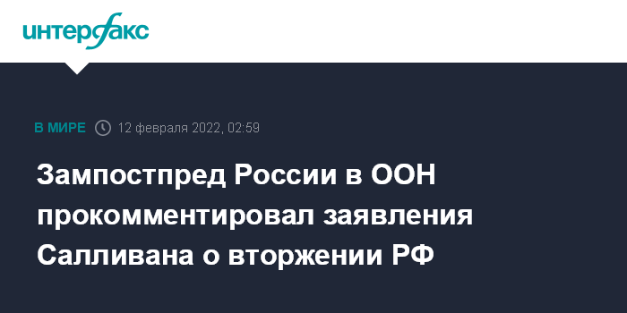 Зампостпред России в ООН прокомментировал заявления Салливана о вторжении РФ