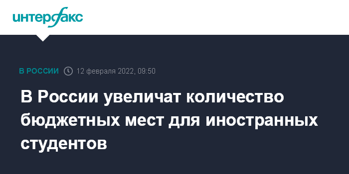 Москва. 12 февраля. INTERFAX.RU - В 2023 учебном году количество бюджетных мест, выделяемых для обучения иностранных граждан в российских вузах, по сравнению с текущим годом увеличится на 12 тысяч и составит 30 тысяч, сообщили в Минобрнауки.