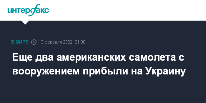 Москва. 13 февраля. INTERFAX.RU - США доставили на Украину двумя самолетами боеприпасы и заряды для гранатометов.