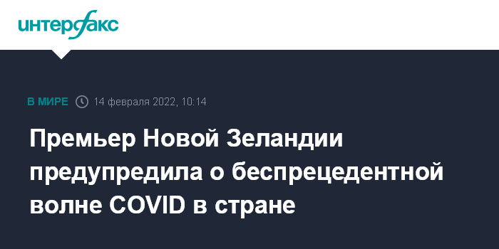 Москва. 14 февраля. INTERFAX.RU - Премьер-министр Новой Зеландии Джасинда Ардерн в понедельник заявила, что страна столкнулась с новой волной коронавируса, и предупредила о значительном росте заболеваемости COVID-19, сообщают западные СМИ.