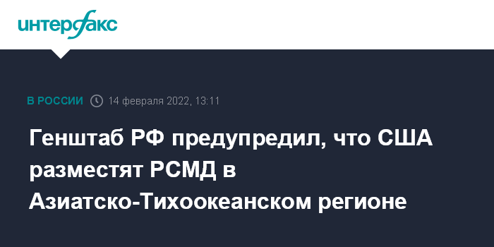Москва. 14 февраля. INTERFAX.RU - США к 2028 году разместят в Азиатско-Тихоокеанском регионе ракеты средней и меньшей дальности для сдерживания России и Китая, сообщил заместитель начальника главного оперативного управления (ГОУ) Генштаба РФ Станислав Гаджимагомедов.