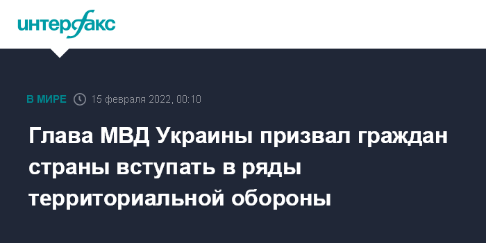 Глава МВД Украины призвал граждан страны вступать в ряды территориальной обороны