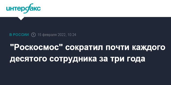 Москва. 15 февраля. INTERFAX.RU - "Роскосмос" сократил 8,8% сотрудников за три года, большая часть сокращений персонала вызвана выходом на пенсию, сообщил замгендиректора госкорпорации по экономике и финансам Максим Овчинников.