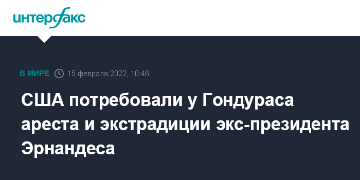 Москва. 15 февраля. INTERFAX.RU - США направили Гондурасу запрос на арест и экстрадицию бывшего президента Гондураса Хуана Орландо Эрнандеса. Об этом сообщает во вторник агентство Associated Press.