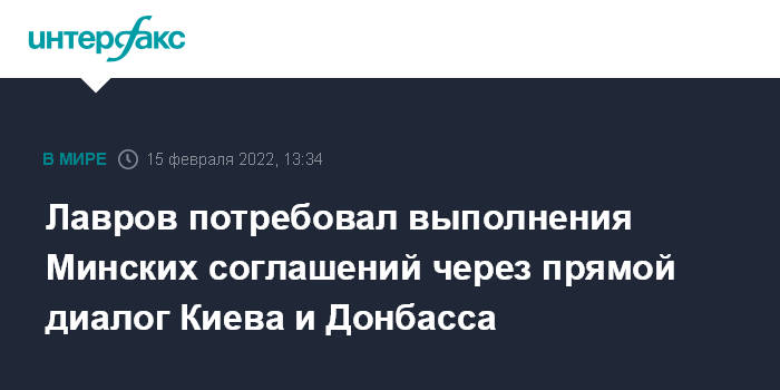 Москва. 15 февраля. INTERFAX.RU - Выполнение Минских соглашений, предусматривающих прямой диалог Киева с Донецком и Луганском, безальтернативно, заявил глава МИД Сергей Лавров по итогам переговоров с главой МИД Польши, действующим председателем ОБСЕ Збигневым Рау.