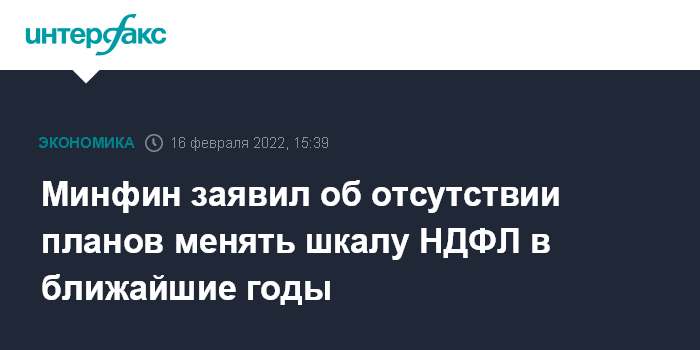 Москва. 16 февраля. INTERFAX.RU - Минфин РФ в ближайшие годы не планирует предлагать изменение шкалы НДФЛ, заявил журналистам министр финансов Антон Силуанов.