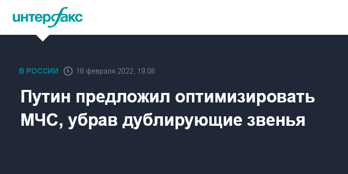 Москва. 16 февраля. INTERFAX.RU - Президент РФ Владимир Путин поставил перед МЧС России задачу повышения эффективности деятельности за счет ликвидации дублирующих звеньев и усиления надзорной деятельности.