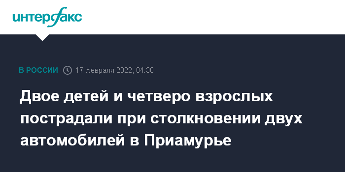 Москва. 17 февраля. INTERFAX.RU - Двое детей и четверо взрослых пострадали при столкновении легковых автомобилей на трассе в Амурской области, сообщает региональное УГИБДД.