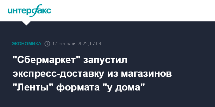 Москва. 17 февраля. INTERFAX.RU - Сервис доставки продуктов и товаров "Сбермаркет" запустил экспресс-доставку из магазинов "у дома" ритейлера "Лента".