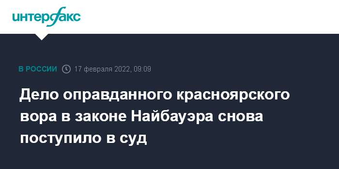 Как сообщалось, 16 сентября 2021 года Красноярский краевой суд оправдал обвинявшегося по статье о высшем положении в преступной иерархии Найбауэра. До этого, 13 сентября 2021 года, его оправдала коллегия присяжных заседателей. Они единогласно не согласились с доводами следствия и признали, что вина подсудимого не доказана.