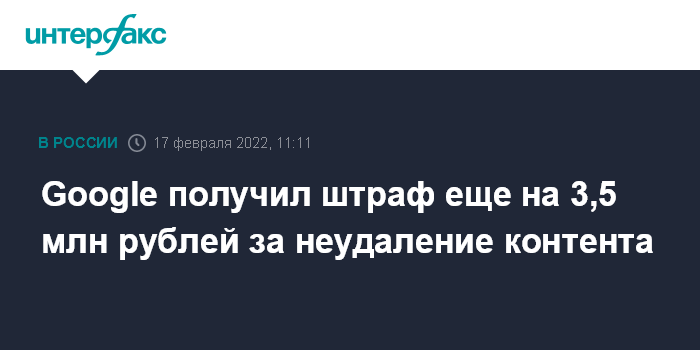 Google получил штраф еще на 3,5 млн рублей за неудаление контента
