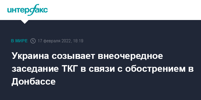 Москва. 17 февраля. INTERFAX.RU - Украинская делегация в Трехсторонней контактной группе по Донбассу инициирует безотлагательное внеочередное заседание ТКГ на уровне глав делегаций и рабочих подгрупп в связи с обострением ситуации на линии противостояния в Луганской области. Об этом говорится на странице делегации в фейсбуке.