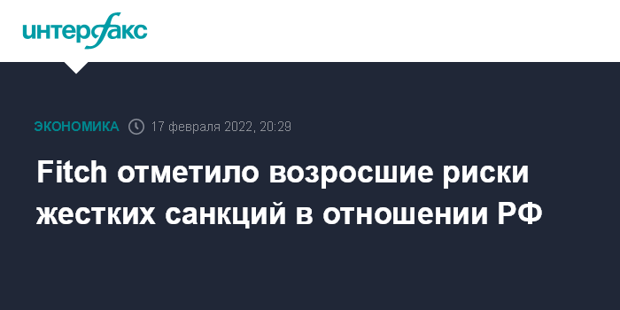 Москва. 17 февраля. INTERFAX.RU - В последнее время наблюдается заметное повышение рисков жестких санкций в отношении России, которые могут оказать давление на суверенные рейтинги страны и на рейтинги банков, говорится в обзоре агентства Fitch.