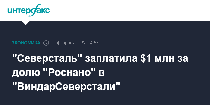 "Северсталь" заплатила $1 млн за долю "Роснано" в "ВиндарСеверстали"