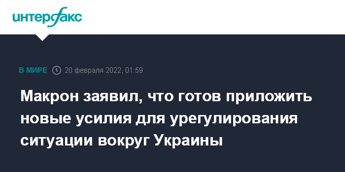 Москва. 20 февраля. INTERFAX.RU - Президент Франции Эммануэль Макрон готов делать усилия, чтобы добиться деэскалации ситуации вокруг Украины, сообщает телеканал BFMTV со ссылкой на Елисейский дворец.