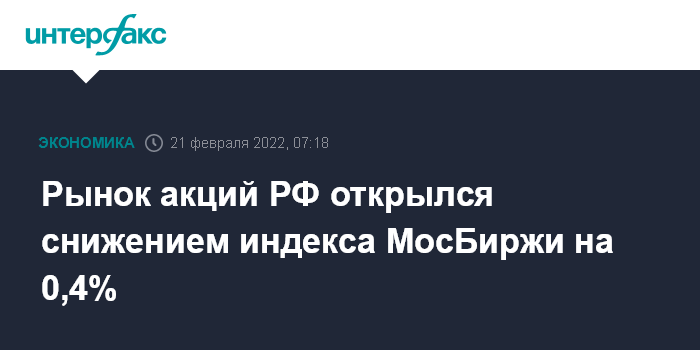 Рынок акций РФ открылся снижением индекса МосБиржи на 0,4%