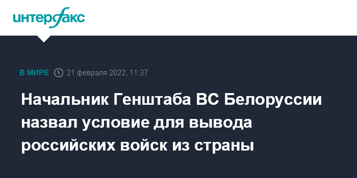 Москва. 21 февраля. INTERFAX.RU - Российские воинские подразделения, которые прибыли в Белоруссию на учения, вернутся в пункты постоянной дислокации только тогда, когда в этом появится объективная необходимость, заявил начальник Генерального штаба ВС Белоруссии генерал-майор Виктор Гулевич на брифинге для военных атташе. Его цитирует "БелТА".