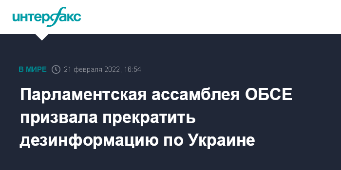 Парламентская ассамблея ОБСЕ призвала прекратить дезинформацию по Украине