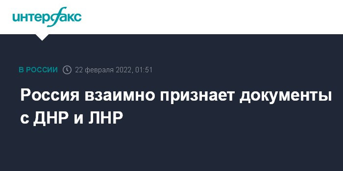 Президент России Владимир Путин после обращения к россиянам вечером 21 февраля подписал указы о признании независимости Луганской и Донецкой народных республик, а также соглашения о дружбе и взаимопомощи с ЛНР и ДНР. Ожидается, что обе палаты российского парламента ратифицируют решение президента РФ на заседаниях во вторник.