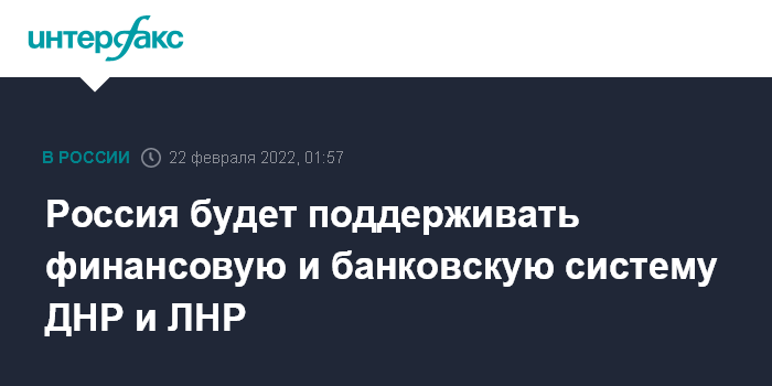 Россия будет поддерживать финансовую и банковскую систему ДНР и ЛНР