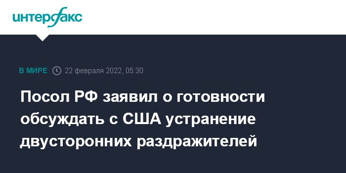 Посол РФ заявил о готовности обсуждать с США устранение двусторонних раздражителей