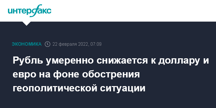 Москва. 22 февраля. INTERFAX.RU - Доллар США и евро умеренно растут на "Московской бирже" во вторник утром, рубль продолжает слабеть к бивалютной корзине на фоне обострения геополитической ситуации, сдерживают его падение нефтяные котировки.