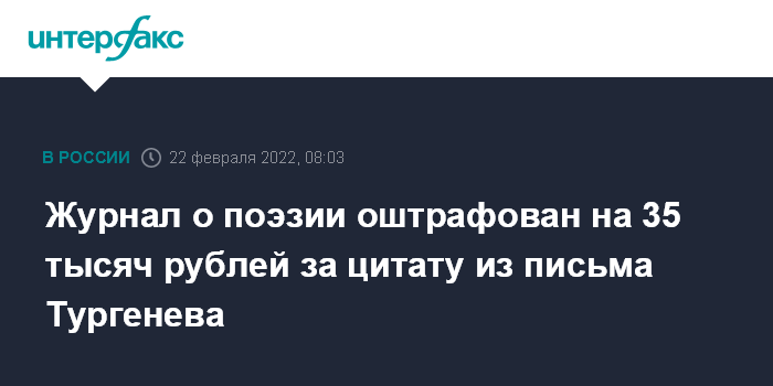 Журнал о поэзии оштрафован на 35 тысяч рублей за цитату из письма Тургенева