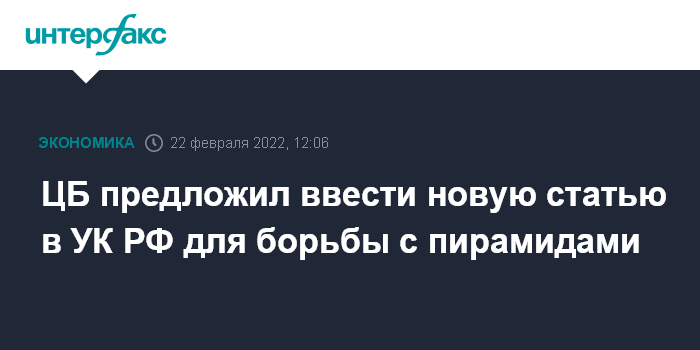 ЦБ предложил ввести новую статью в УК РФ для борьбы с пирамидами
