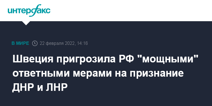 Швеция пригрозила РФ "мощными" ответными мерами на признание ДНР и ЛНР