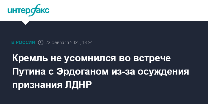 Ранее во вторник газета Sabah сообщила, что Эрдоган назвал "неприемлемым" российское признание независимости ЛНР и ДНР.