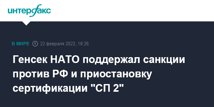 Генсек НАТО поддержал санкции против РФ и приостановку сертификации "СП 2"