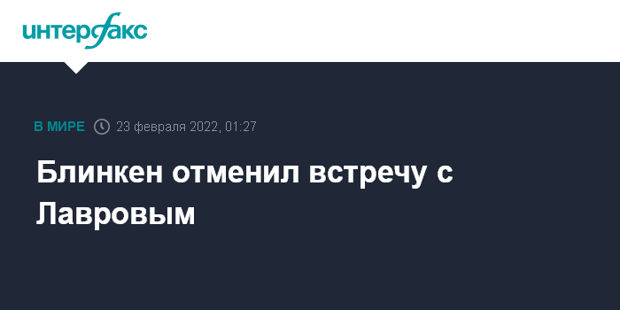"На прошлой неделе я согласился встретиться с министром иностранных дел Сергеем Лавровым на этой неделе, 24 февраля, чтобы обсудить обеспокоенность наших стран о европейской безопасности, но только если Россия не вторгнется в Украину. Сейчас мы видим, что вторжение начинается, и Россия продемонстрировала отрицание дипломатии, сейчас нет смысла в этой встрече", - сказал Блинкен на брифинге по результатам переговоров с министром иностранных дел Украины Дмитрием Кулебой в Вашингтоне во вторник.