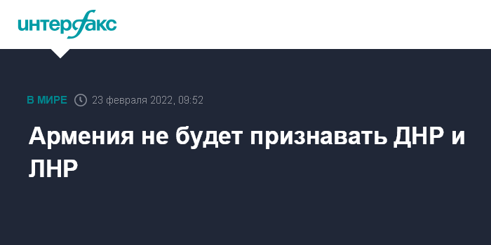 Москва. 23 февраля. INTERFAX.RU - Армения не планирует признавать Донецкую и Луганскую народные республики, заявил пресс-секретарь МИД Армении Ваан Унанян.