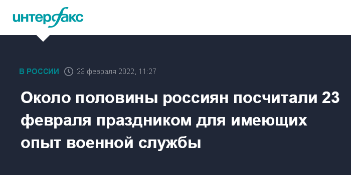 Около половины россиян посчитали 23 февраля праздником для имеющих опыт военной службы