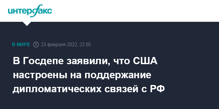 В Госдепе заявили, что США настроены на поддержание дипломатических связей с РФ