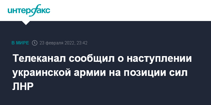 "Украинская армия, вероятно, начала наступление у населенного пункта Николаевка в Луганской народной республике", - сказал ведущий в эфире телеканала "Россия -24" со ссылкой на корреспондента в среду.