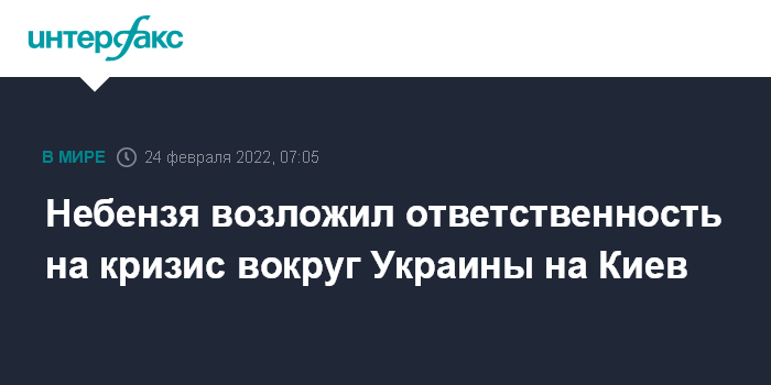 Небензя возложил ответственность на кризис вокруг Украины на Киев