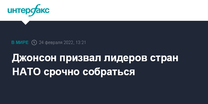 Москва. 24 февраля. INTERFAX.RU - Британский премьер Борис Джонсон выступил в четверг с призывом срочно созвать встречу стран НАТО на высшем уровне.