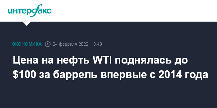 Цена на нефть WTI поднялась до $100 за баррель впервые с 2014 года