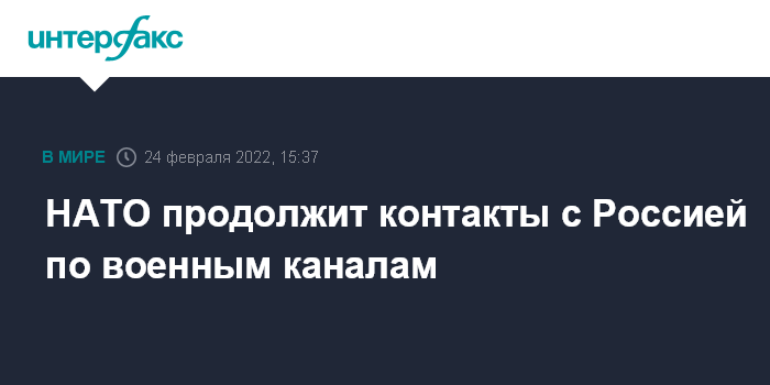 Москва. 24 февраля. INTERFAX.RU - НАТО продолжит взаимодействовать с Россией по военным каналам в рамках усилий по предотвращению конфликтных ситуаций, заявил генсек Североатлантического альянса Йенс Столтенберг.