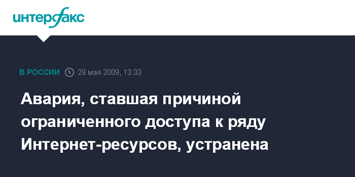 Авария, ставшая причиной ограниченного доступа к ряду Интернет-ресурсов, устранена